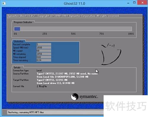 6、 老毛桃PE装机工具正在释放系统镜像,完成后将自动重启,期间请耐心等待,具体操作所示。
