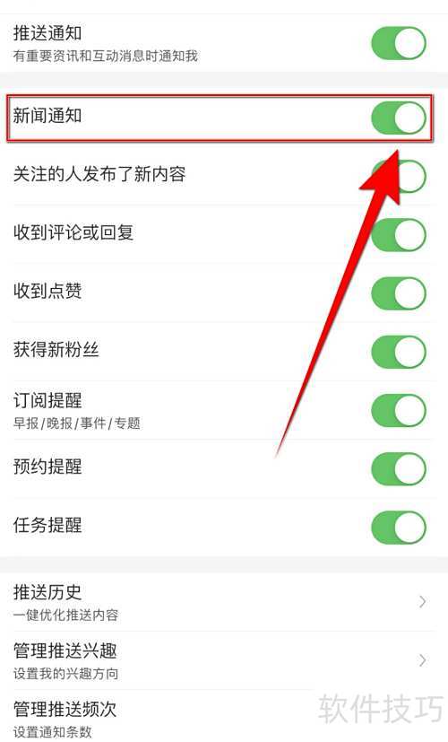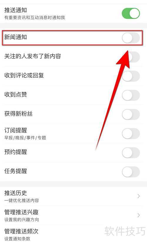 3、 在设置中点击新闻通知右侧的圆点