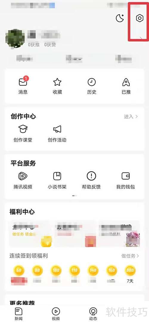 1、 打开腾讯新闻,点击底部我的选项进入个人页面。
