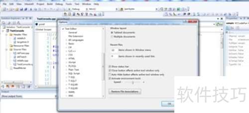2、 打开文本编辑器对话框,配置语言、字体等选项。