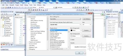 4、 开发时通常采用Courier New字体,字体大小可根据个人习惯调整。相关设置可在选项→环境→字体和颜色中进行配置,便于提升代码阅读与编写体验,建议选择清晰易辨的样式以优化工作流程。