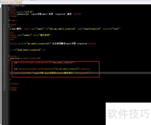 7、 在自定义函数中获取输入的邮箱对象,读取其required属性的值,并将该值动态添加至p标签内进行展示。