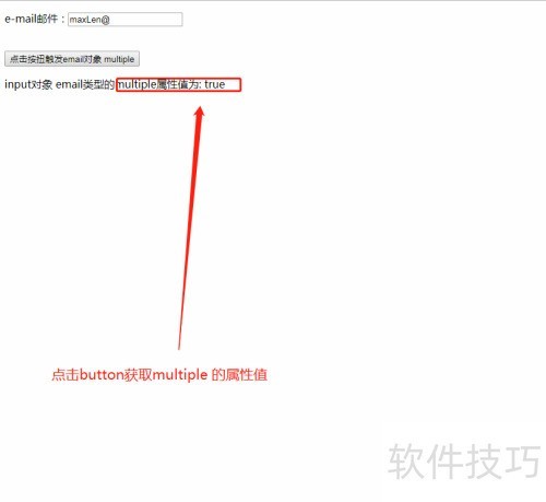 7、 打开浏览器中的email_multiple文件,点击按钮即可查看multiple属性的设置效果。
