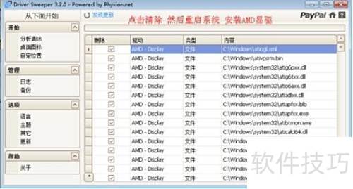 4、 卸载完成后需重启系统,然后使用Driver Sweeper软件彻底清除AMD驱动残留,若此前使用过NVIDIA显卡,也应一并清理其相关驱动文件。