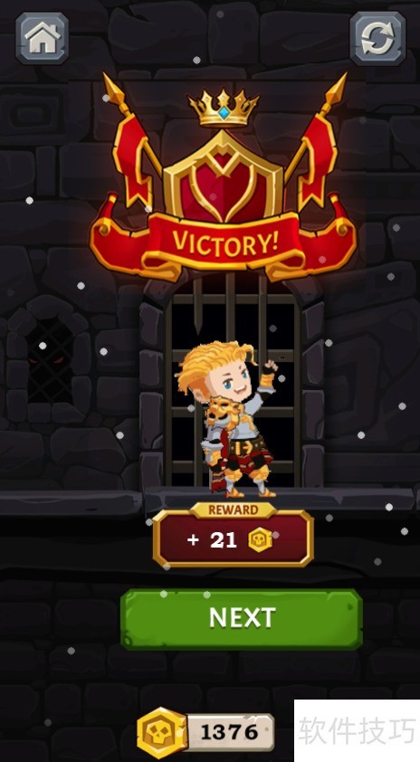 5、 成功开启宝箱,红色胜利旗帜弹出,所示,顺利通关。
