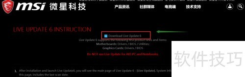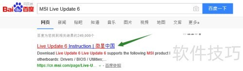 1、 搜索MSI Live Update 6,访问微星中国官网,操作步骤所示。