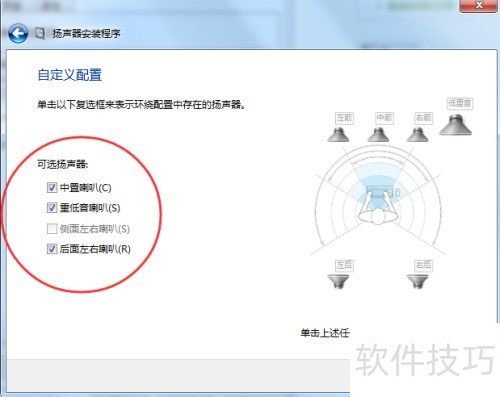 7、 进入扬声器音域选择界面,勾选全部选项,随后点击下一步即可继续操作。
