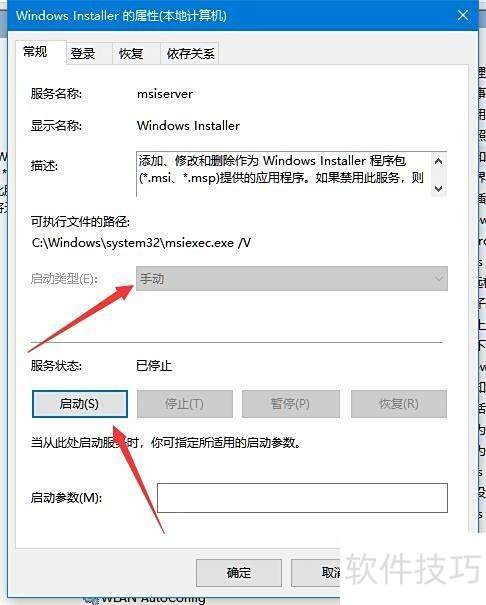 6、 采用相同方式打开Windows Installer的属性界面,启动该服务,并将其启动类型设为自动,确认保存设置。随后注销并重新登录系统,检查服务列表中是否存在Windows Defender Firewall服务。若仍未出现,请继续执行后续操作步骤。