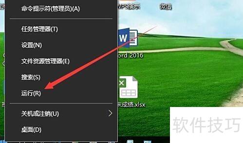 1、 在Windows 10系统中,右键单击屏幕左下角的开始图标,从弹出的菜单里选择运行选项即可打开运行对话框。