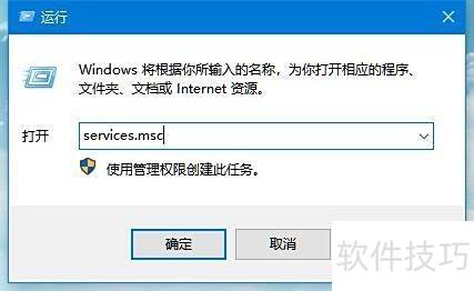 2、 在Windows 10的运行窗口中输入services.msc命令,随后点击确定即可打开服务管理界面。