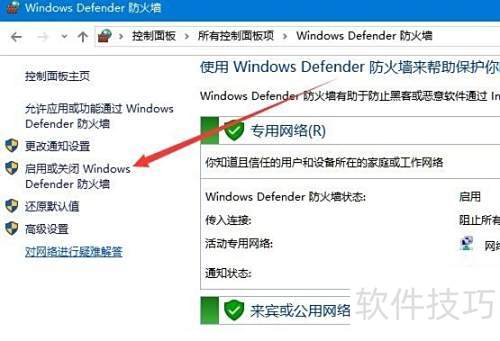 8、 在打开的Windows Defender防火墙界面中,选择左侧菜单中的启用或关闭Windows Defender防火墙选项。