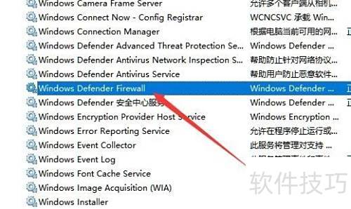 10、 在Windows 10的服务界面中,可以轻松找到Windows Defender防火墙服务选项。