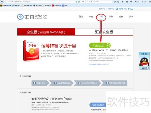 2、 登录官网,点击右上角下载进入页面,选择并点击下载企业版即可。