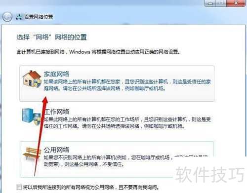 3、 进入设置网络位置界面后,选择家庭网络即可完成设置。