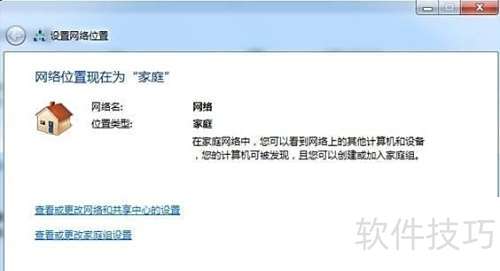 4、 第四步:系统将显示网络位置已设置为家庭。