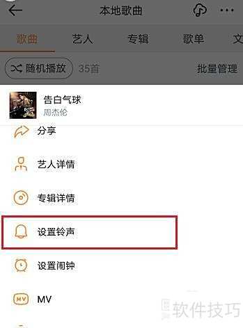 2、 挑选喜欢的音乐,点击歌曲后面的...按钮进行铃声设置。