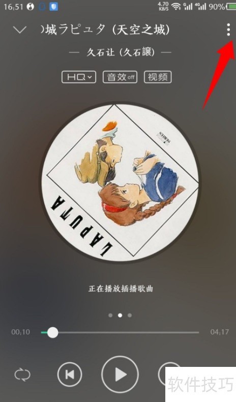 1、 在音乐播放页面,点击右上角三个点的图标,操作所示。