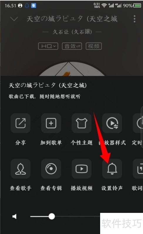 2、 点击后底部弹出界面,选择设置为铃声即可,操作所示。