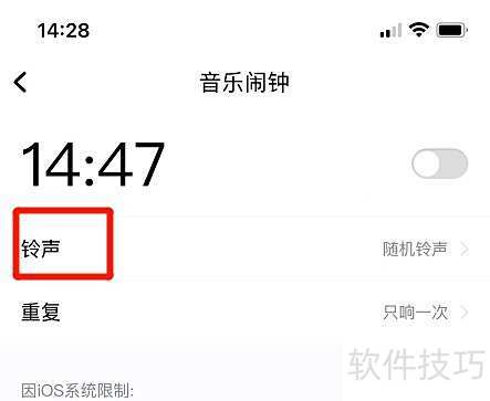 2、 进入音乐闹钟的铃声设置页面进行选择。