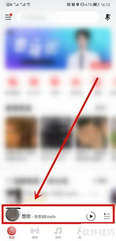 2、 打开网易云音乐首页,点击底部歌曲,进入播放页面即可。