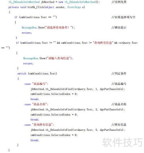 2、 创建一个名为frmFindGoods.cs的Windows窗体,用于查询商品进货信息,包含多个控件,支持用户输入查询条件并显示相应结果,界面简洁,操作方便。