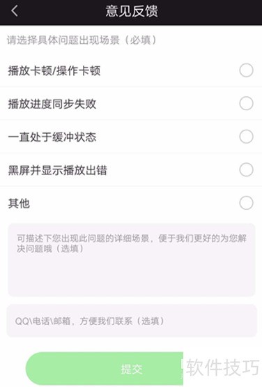 5、 观看中遇到问题可随时通过意见反馈提交,客服将及时处理并回复。