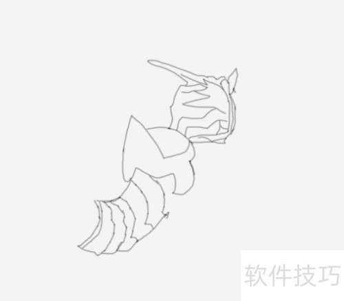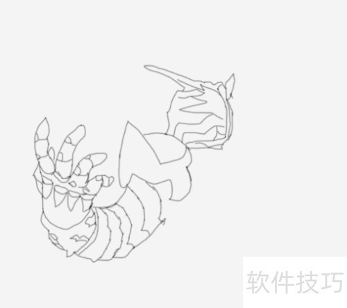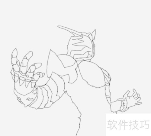 6、 在头部与双臂下方勾勒出上半身的轮廓,具体形态参照图示。