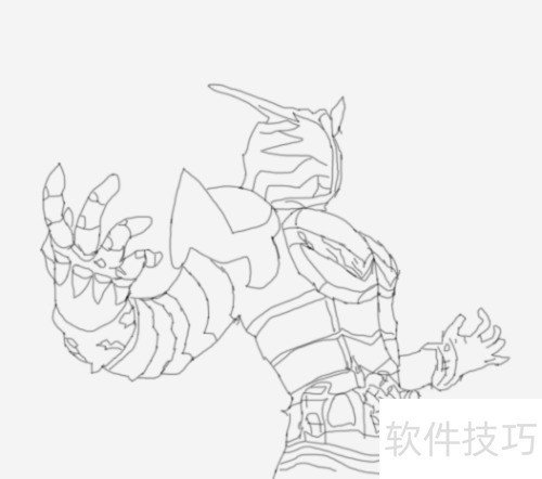 1、 先勾勒出假面骑士Build头部的大致轮廓,参考图示进行描绘。