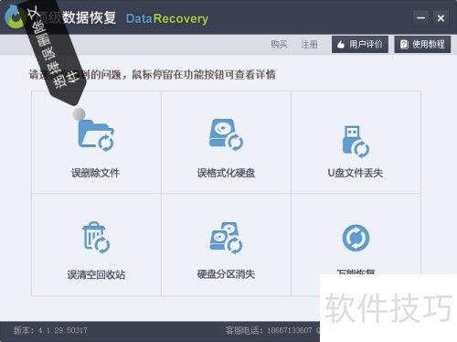 2、 选择误删文件选项,适用于因电脑故障导致的文件丢失情况。