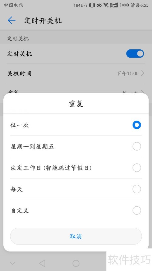 1、 华为手机关机方法包括手动关机和设置定时关机两种方式。