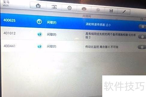 1、 通过电脑检测变速箱系统,读取到故障码400625或400626,均表示涡轮速度传感器信号过弱,两者含义一致,具体所示。
