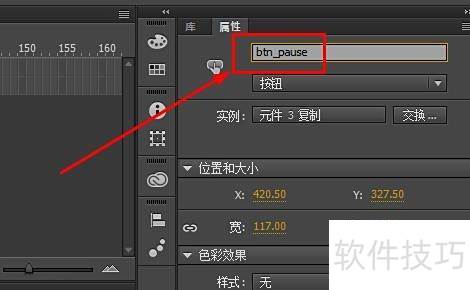4、 将播放按钮的实例命名为btn_play,暂停按钮的实例命名为btn_pause。