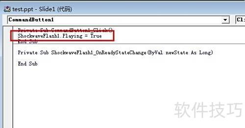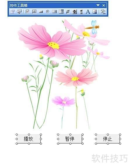 2、 在前一篇教程中,我们通过控件将Flash动画插入PPT,接下来将利用控件工具箱里的命令按钮功能实现更多交互操作。