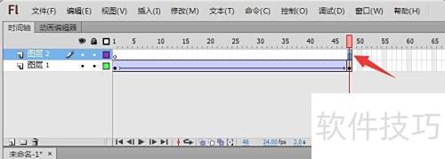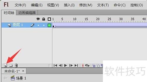 1、 完成Flash动画后,于时间轴面板点击新建图层按钮,创建新图层。