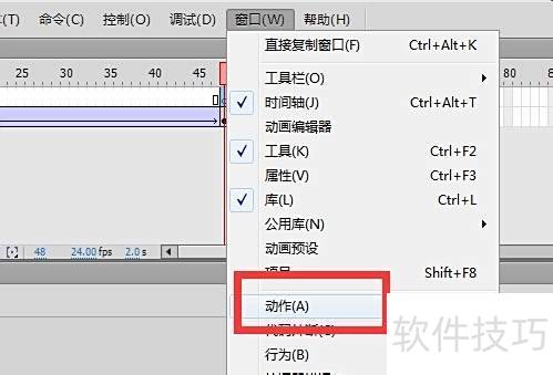 4、 点击窗口菜单中的动作选项,开启动作面板。