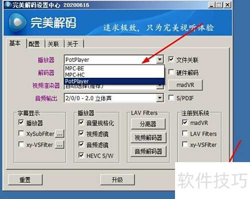 4、 打开完美解霸设置,选择所需格式并点击应用完成配置。