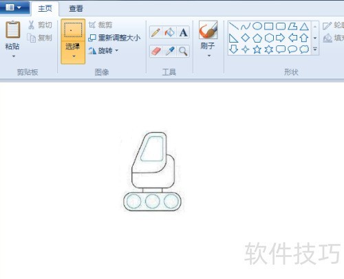 3、 第三步,在上半区域画一个梯形作为挖掘机的窗户,下方画三个圆形代表滚轮。