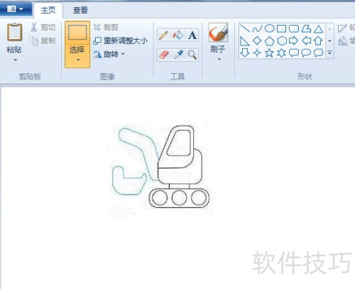 4、 第四步,于挖掘机前端绘制形似回旋镖的结构,代表挖掘臂,其下方再绘出挖斗部分。