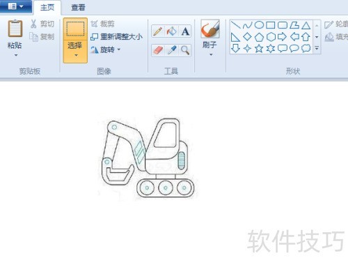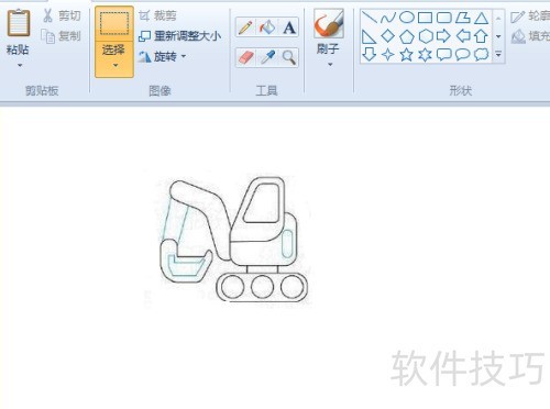 2、 用两条竖线连接上下两部分,代表挖掘机的转轴,再勾勒出整体轮廓。