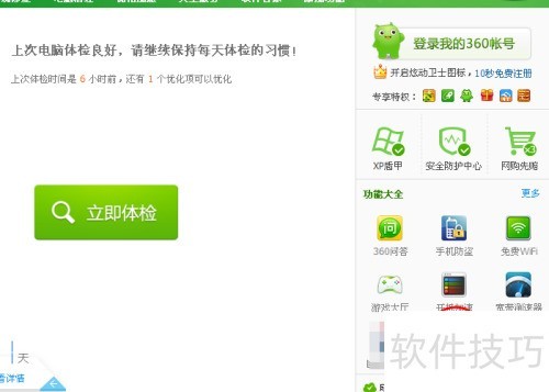 3、 开启360安全卫士,全面扫描电脑查杀木马病毒。