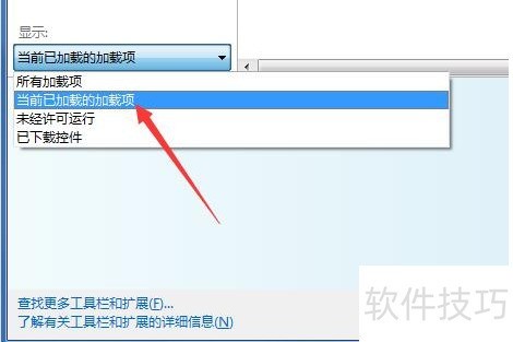 2、 点击显示下的已加载项,将其更改为全部加载项。