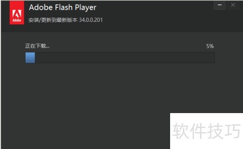 2、 所示,界面中显示Flash Player软件正在下载并安装。