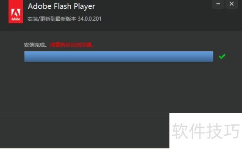 5、 至此,IE浏览器已成功完成Flash Player插件的安装。