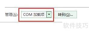6、 进入管理选项,点击com加载项,随后选择转到…按钮进行操作。