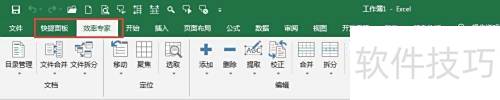 8、 返回Excel工作表界面后,可见菜单栏新增了快捷面板与效率专家两项内容,这正是OIIO效率专家所添加的功能菜单。