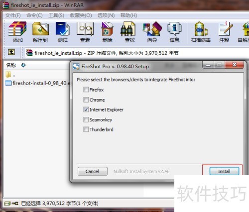 1、 取消其他所有选项的勾选,仅保留Internet Explorer前的勾,然后点击安装按钮即可。