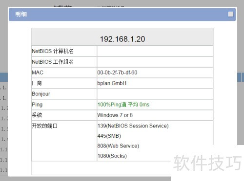 5、 点击图标可执行深入端口扫描,获取开放端口、延迟值及NetBIOS等相关信息。
