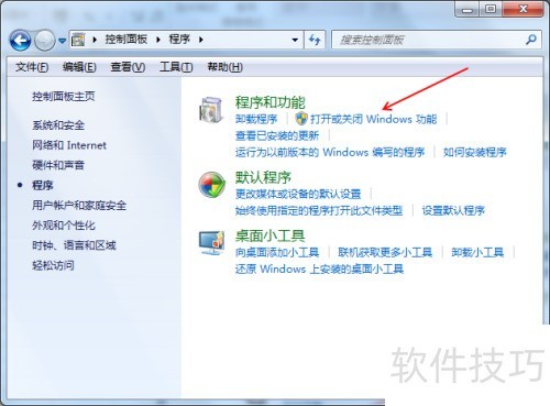 3、 点击打开或关闭Windows功能选项。