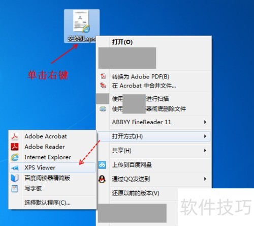 7、 当电脑未将XPS文档默认用XPS Viewer打开时,可右键点击该文件,从菜单中选择XPS Viewer即可打开。