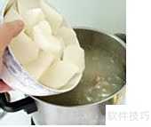 6、 加入萝卜炖煮半小时,最后加盐和鸡精调味即成。